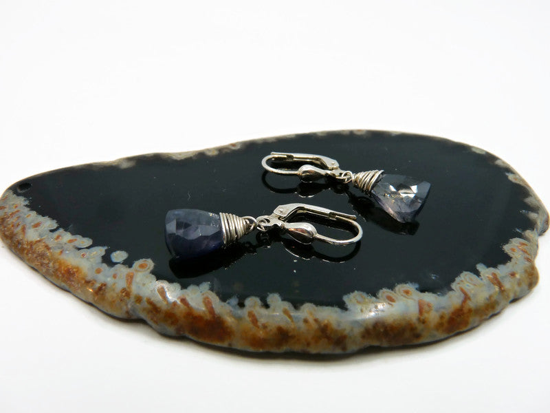 In dit mooie paar zilveren Ioliet oorbelletjes zijn diep blauw/paarse 9 mm driehoekige Iolite briolettes gecombineerd met Sterling zilveren  klaphaakjes. Elegant en ideaal voor dagelijks draag plezier. Dit paar Ioliet oorbelletjes is licht en draagt bijzonder comfortabel. De klap haakjes geven de oorbellen een luxe uitstraling, ze zijn gemakkelijk in- en uit te doen en verzekeren je tegen verlies. Deze set past super goed bij alle soorten modestijlen.